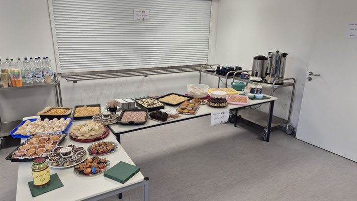 Kaffee, Tee und Kuchen vertreiben. Die Zweitklässler mit Eltern und Lehrkräften organisierten das Kuchenbuffett und kümmerten sich um den Verkauf.