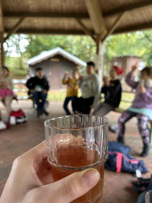 Gemeinsam schnippelten die Kinder die geernteten Früchte klein und wendeten ordentlich Muskelkraft an der Saftpresse auf, um an das „goldene Glück“ (Apfelsaft) zu kommen. Am Ende durfte jedes Kind noch etwas von diesem „Herbstsaft“ mitnehmen. Müde aber glücklich traten alle den Weg zurück an. Alle waren sich einig, dass der Apfelsaft einfach super schmeckte.